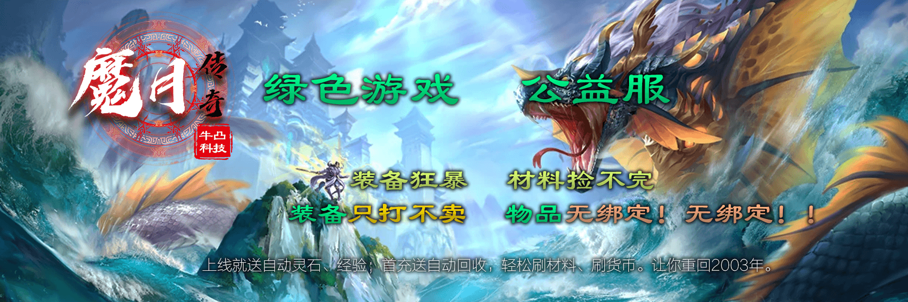 上线就送自动灵石、经验;首充送自动回收,轻松刷材料、刷货币。让你重回2003年。