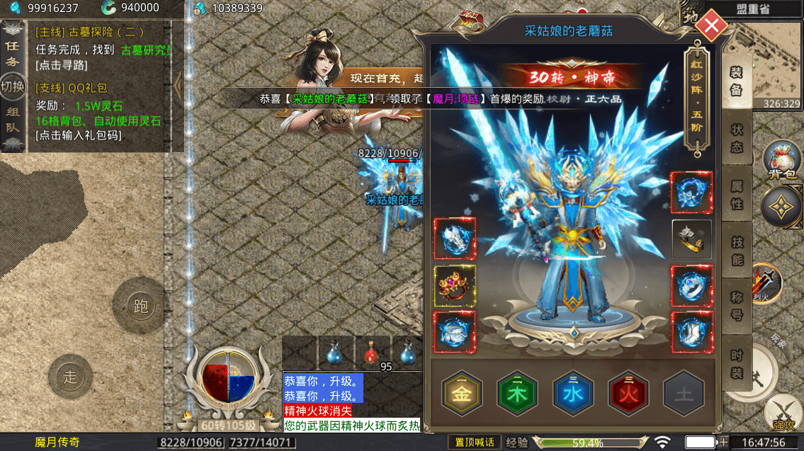 除了装备以外,本服修炼、宝石、强化、合成等特殊玩法。