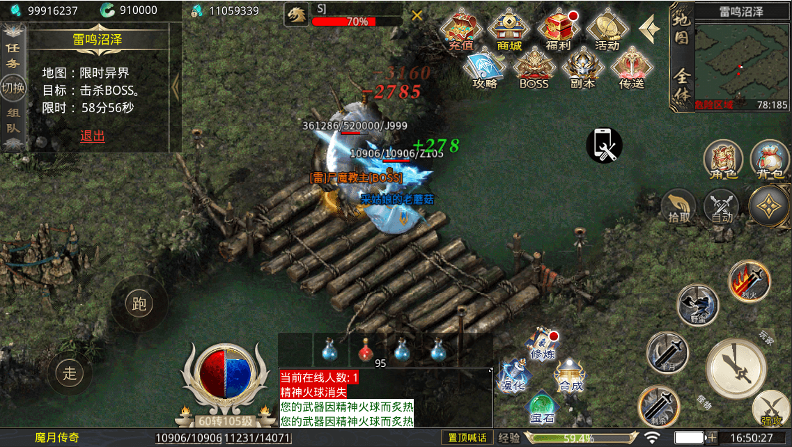 打特殊boss和魔月boss可以获得大量千万经验卷、快速升级