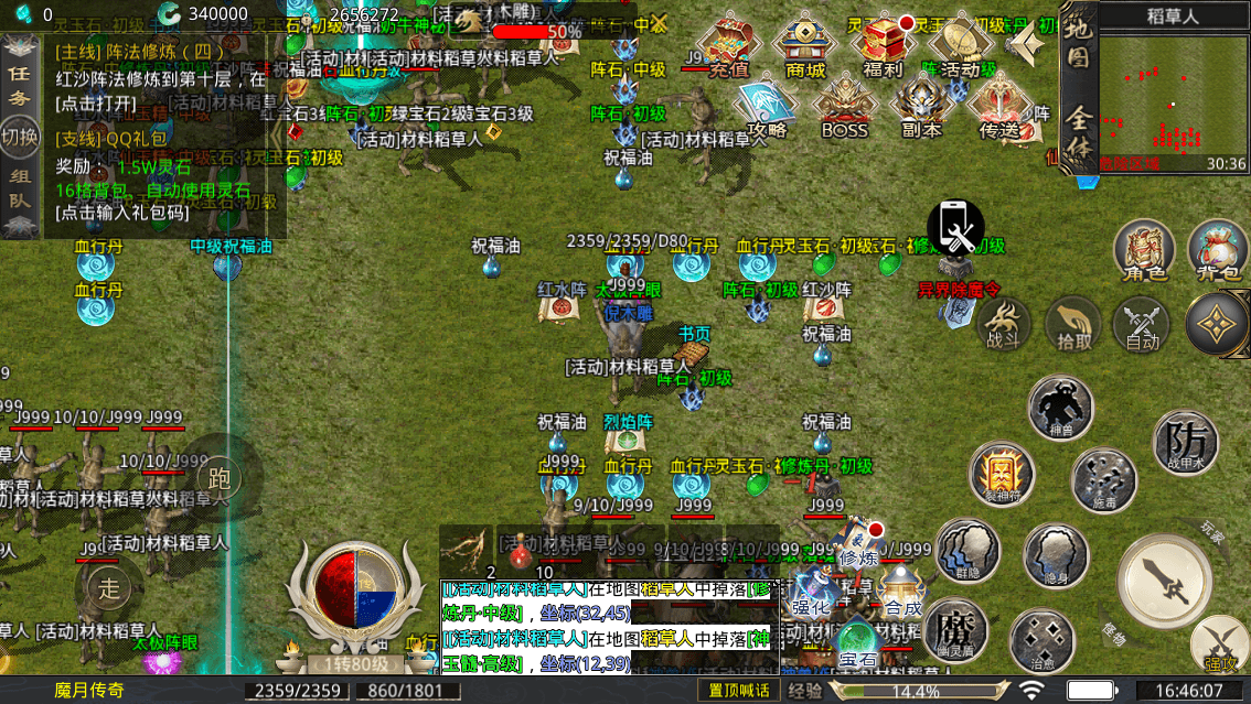首选法师,上线开通自动回收、自动灵石、捡物精灵。