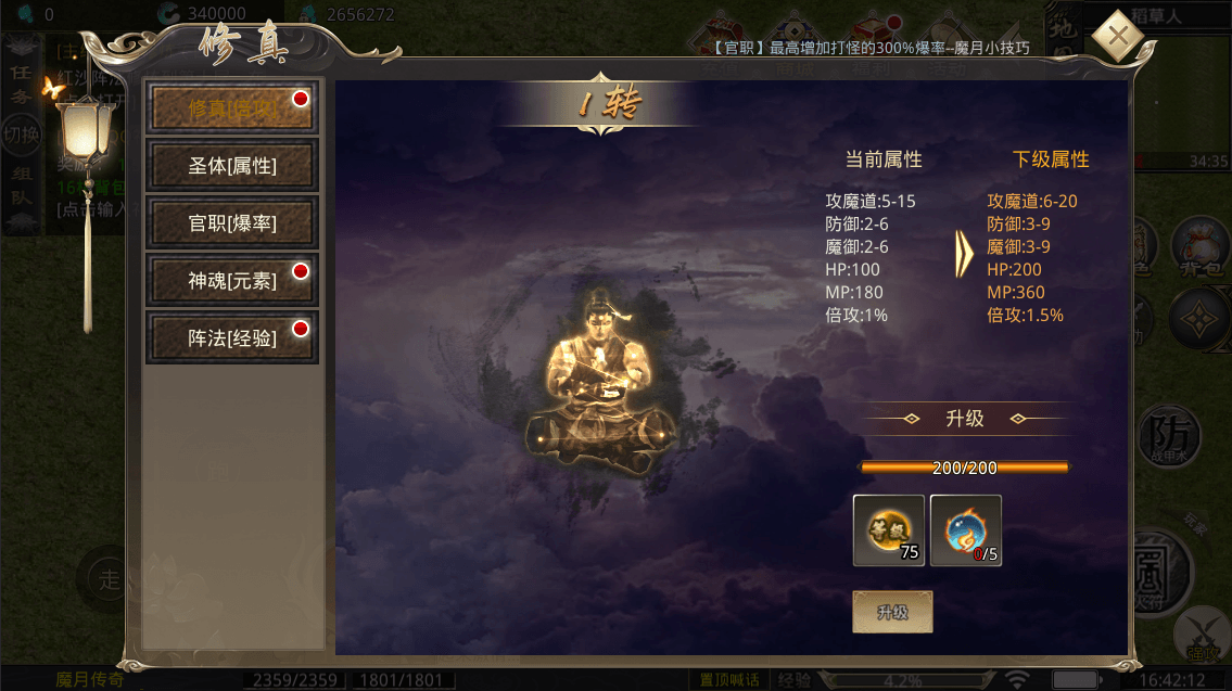 修真(转生)和灵根可以获得大量的倍攻,PK的一大利器。